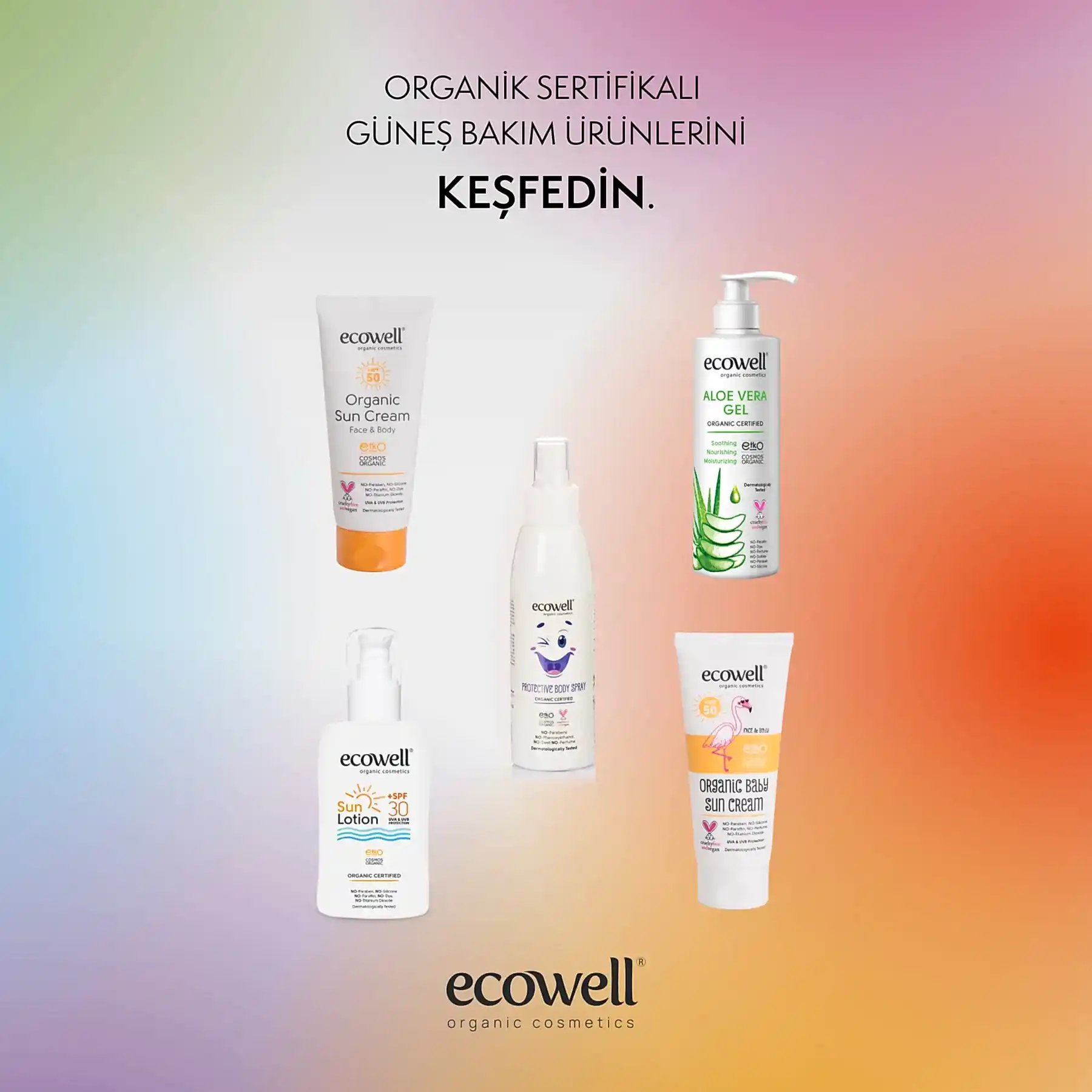 Ecowell Organik Aloe Vera Jel, hassas ve dış etkenlere maruz kalmış ciltler için yatıştırıcı bakım sunar. Organik aloe vera, gül suyu, aynısefa ve papatya özleriyle zenginleştirilmiş formülü cildi nemlendirir, ferahlık sağlar ve doğal bariyerini destekler.